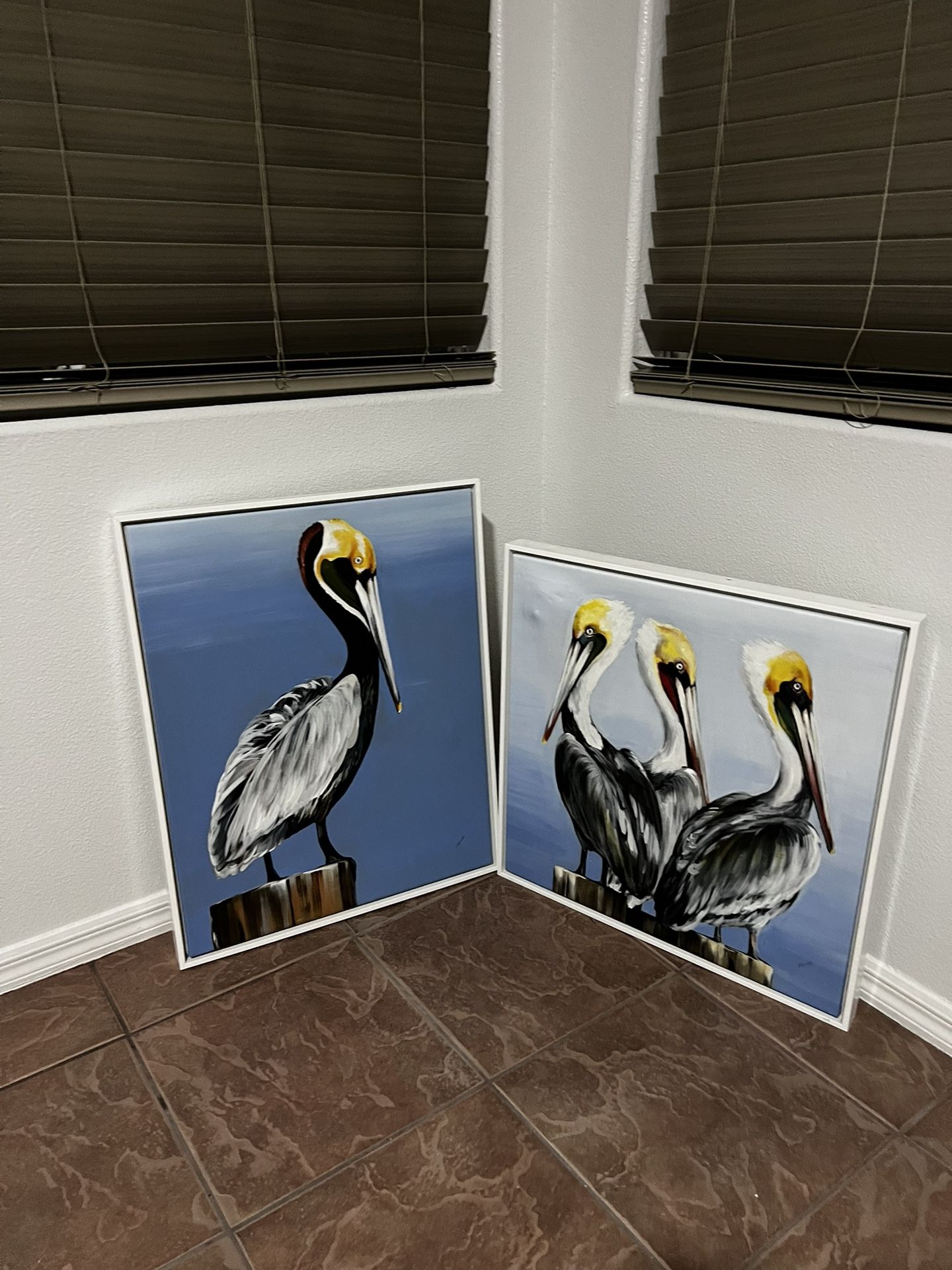 single pelican: 21 x 31 3 pelicans: 27 x 27