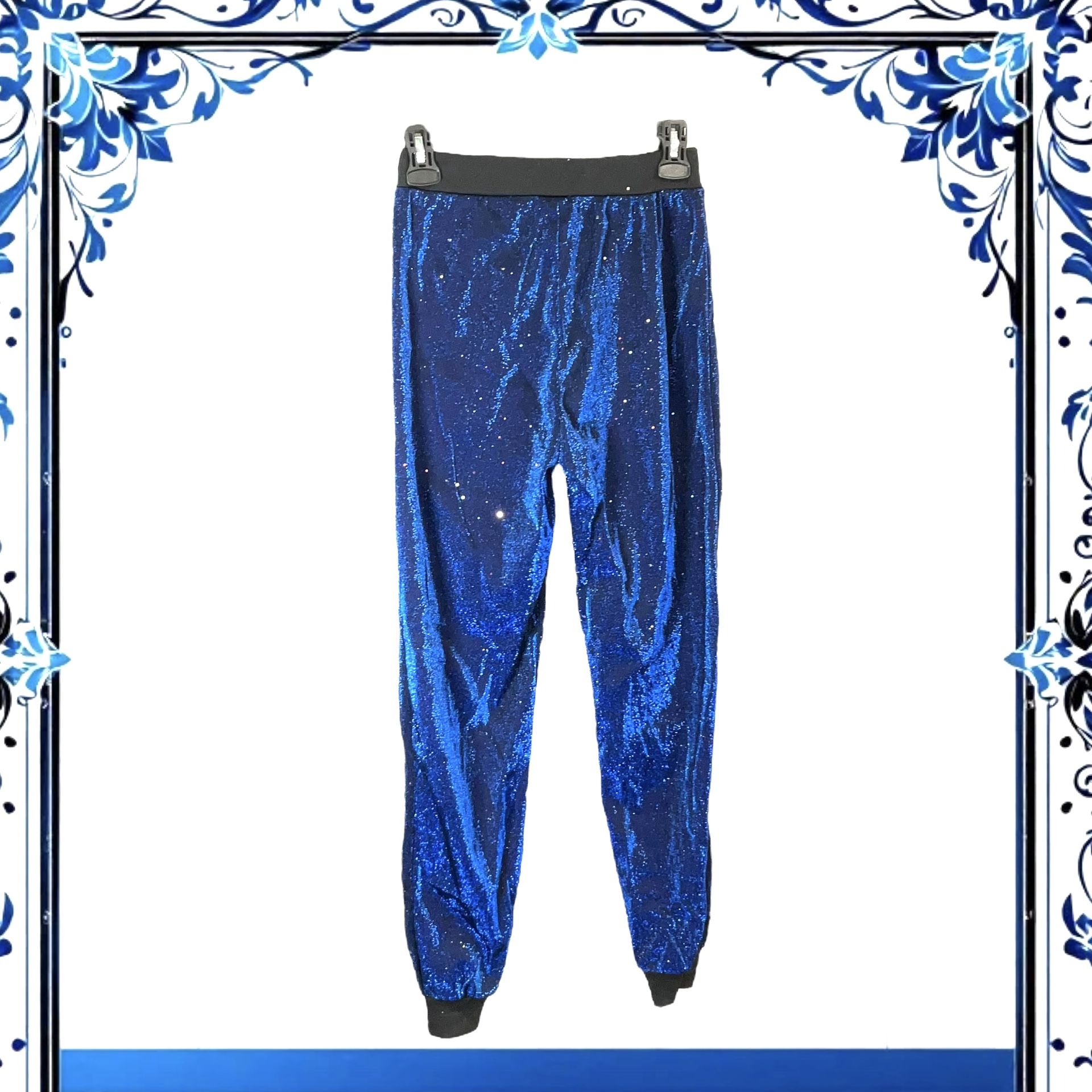 Unbranded Blue Shimmery w Black Trim & Multicolor Glitter Fancy Jogger Pants Women Medium