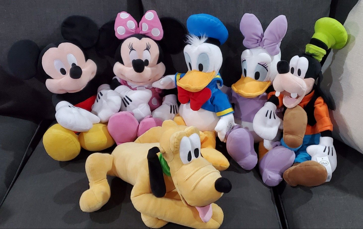 Six medium sized plush disney characters. Brand new all have tags.