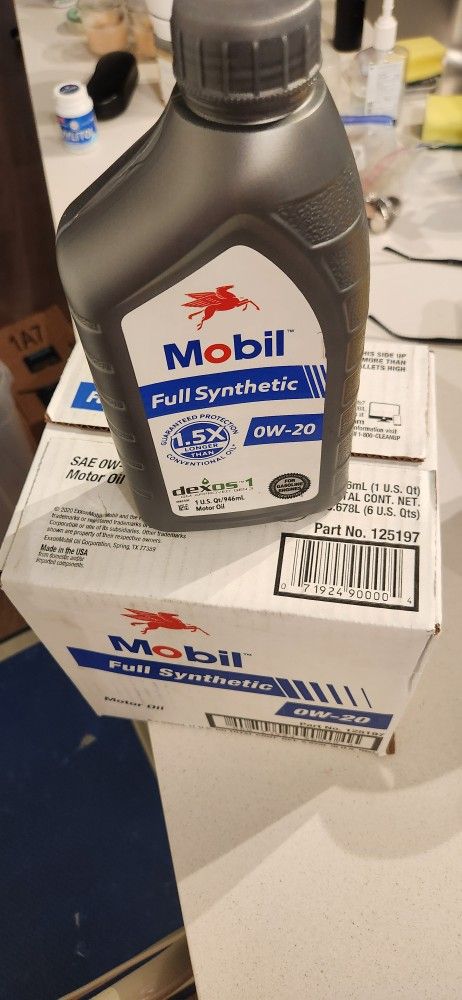 Oil Changing Pan & 7 Quarts Mobil 0W-20 Oil