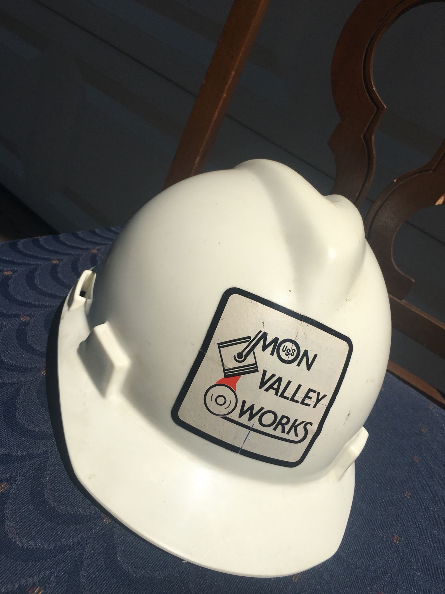 Mom Valley Works Hard Hat 1986. USS Old hard hat made by Mine Safety Appliances Company. Little if no wear to speak of. Size: Medium.