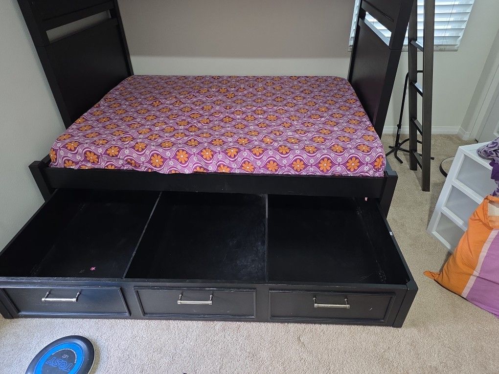 My son (teenager) has outgrown this bed. Brought it brand new from Mor Furniture. No smoking family, No pets It's in great condition with the top bunk almost new. It also has this massive storage or can be used a 3rd bed space I will dismantle it by tomorrow. Pick up in 4s Ranch