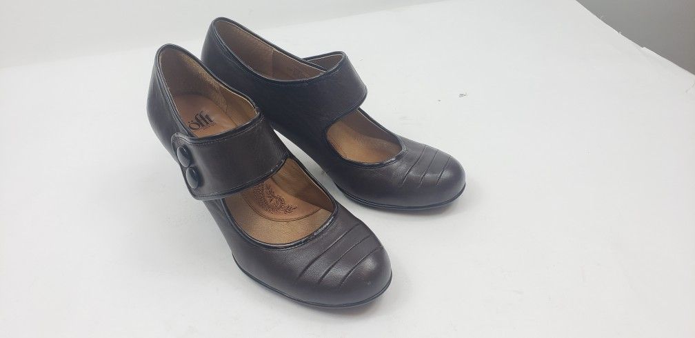 Sofft Womens Heels Clogs Brown Leather Slip On Shoes Button Accent Size 9.5 M