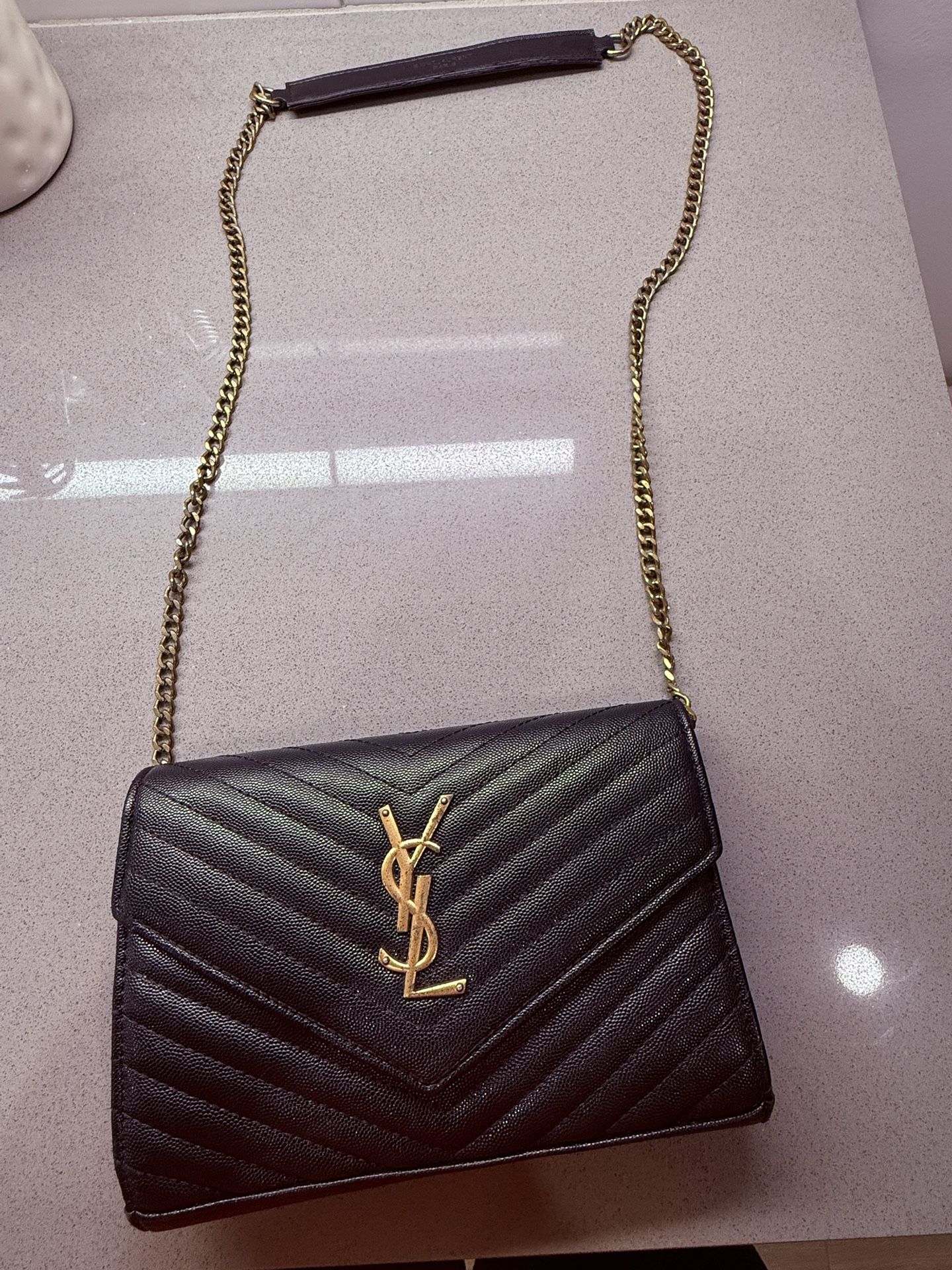 Saint Laurent YSL Envelope Chain Wallet – Black with Gold Hardware – Excellent Condition