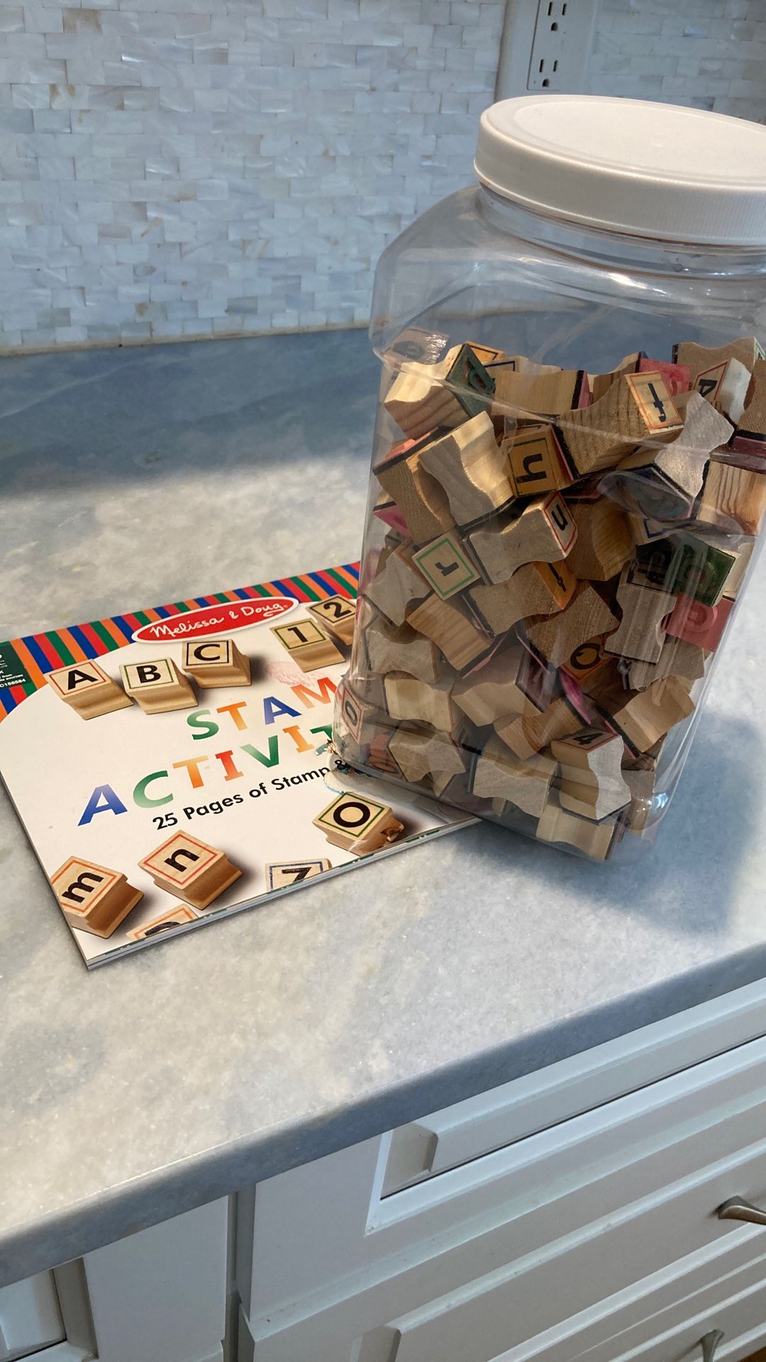 Upper And Lower Alphabet And Numbers. Stamps And Book.