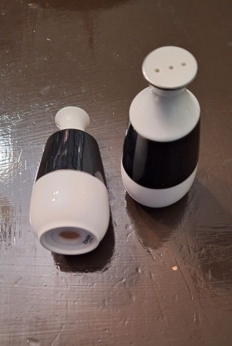 Carico Fine China, service for 6. Dinner plates, salad plate, soup dish, cup and saucer, salt and pepper shaker, napkin rings, 3 serving platters.