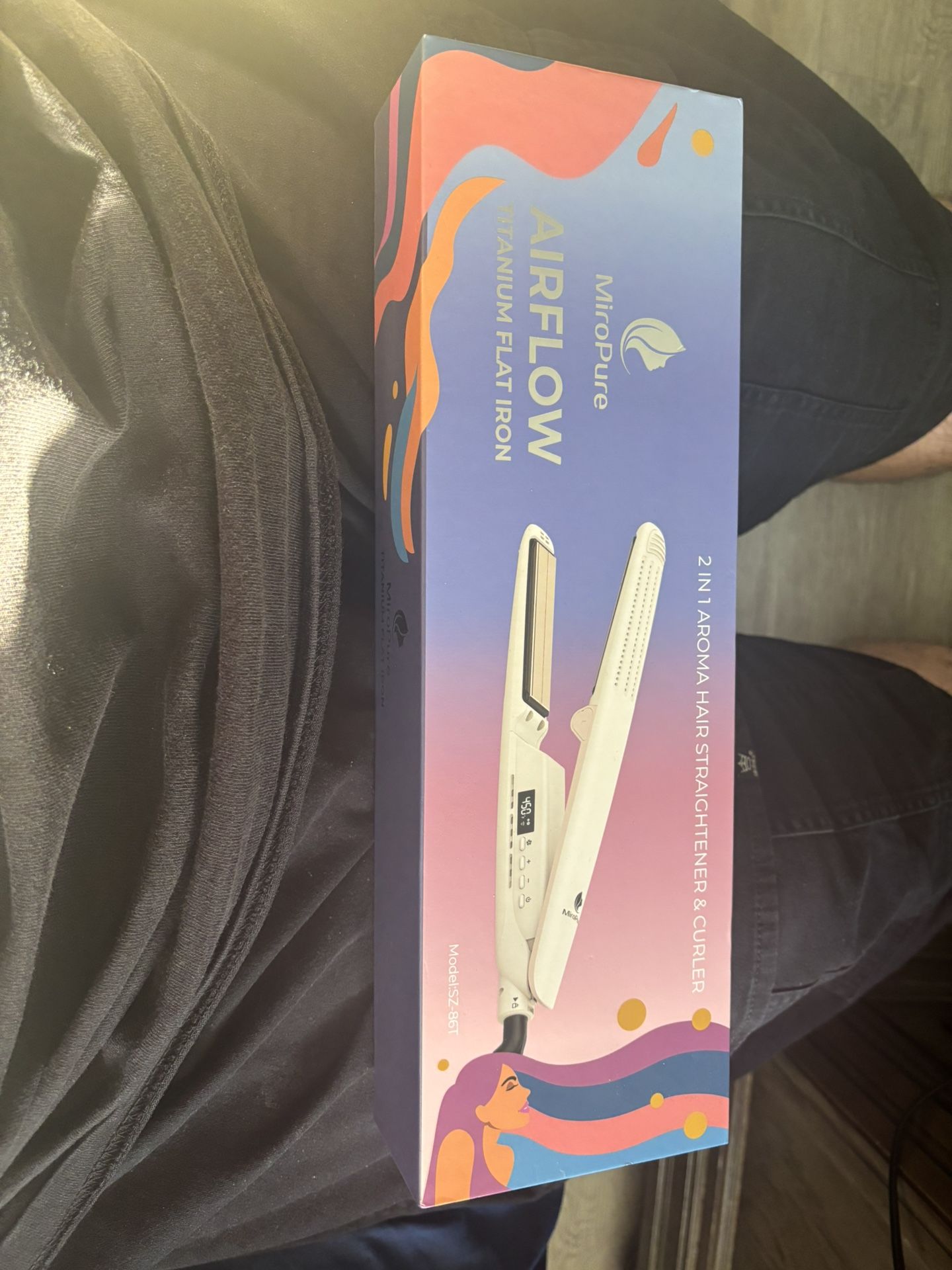 This is MiroPure Flat Iron Hair Straightener, Hair Straightener and Curler 2-in-1, 360° Airflow Styler with Cool Air for Curls, Titanium Ceramic Ionic, Hair Care Aroma,Auto Off, Dual Voltage for Travel