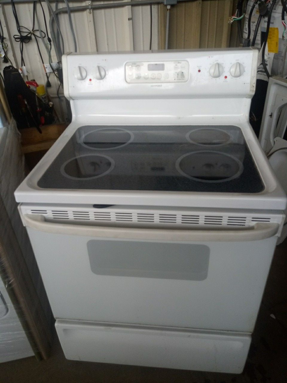 White Hotpoint smooth top stove