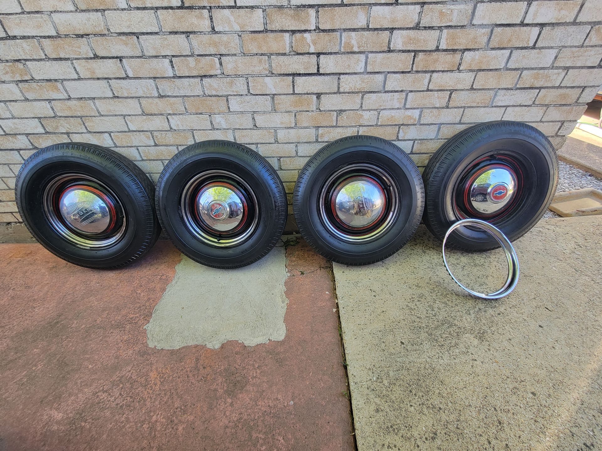 16" 6-Lug (6x5.5 Bolt Pattern) Chevy wheels with beauty rings and caps it has old tires but holds air. No broken clips 6 Lug Steel Chevrolet Rim Wheel Chevy Fleetline Master 30s 40s pickup 3100 1941–1959 Chevrolet/GMC 3100 trucks 6x5.5 bolt pattern Patina truck GM Vintage Classic car 6.00-16 B.F. Goodrich