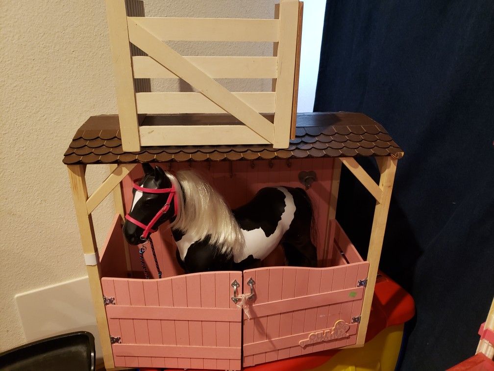 Horse stall needs new home one of the One of the roof shingles is had an accident but was repaired has a little corral ( HORSE NOT INCLUDED ) HORSE SOLD SEPARATELY
