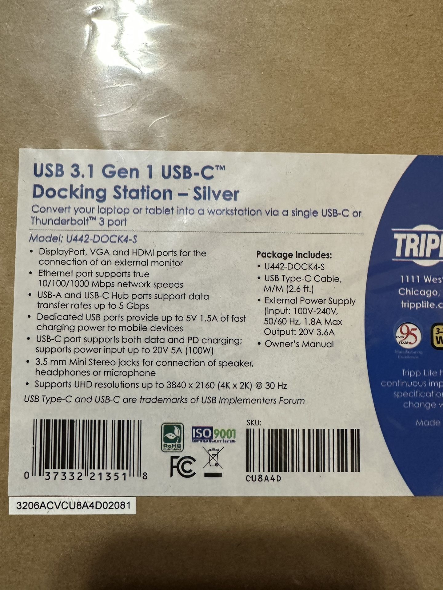Brand new sealed Tripp lite docking station Model U442-DOCK4-S New sealed in box Pick up only! No trades!! $100