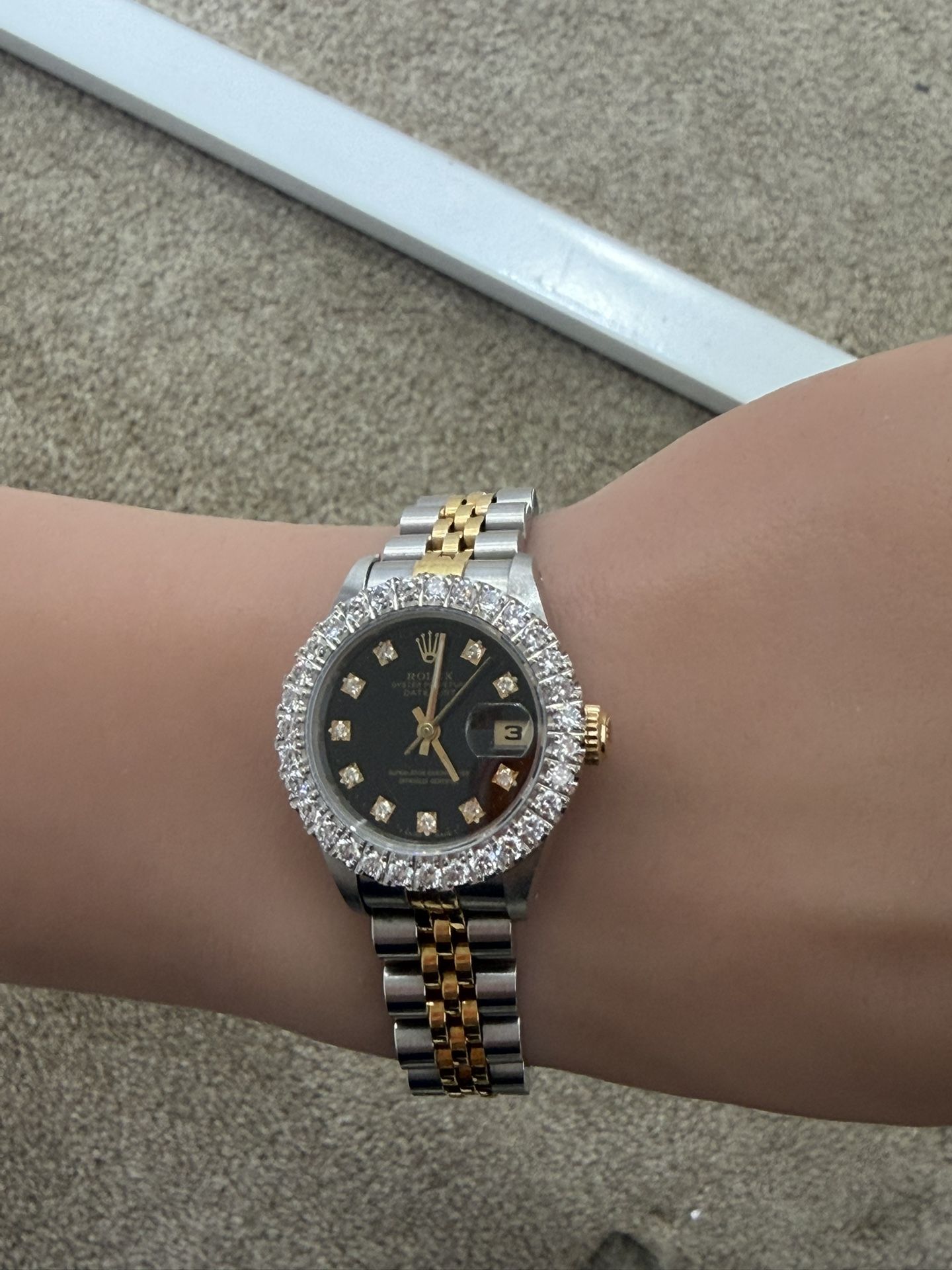 Ladies 26mm DateJust Quickset Black Diamond Dial 1.50Ctw Diamond bezel 2 Tone Jubilee Bracelet Reference 69173 Year 1986 Financing Options Available Jewelzz gold and Diamond 5610 Garth Road Baytown Texas