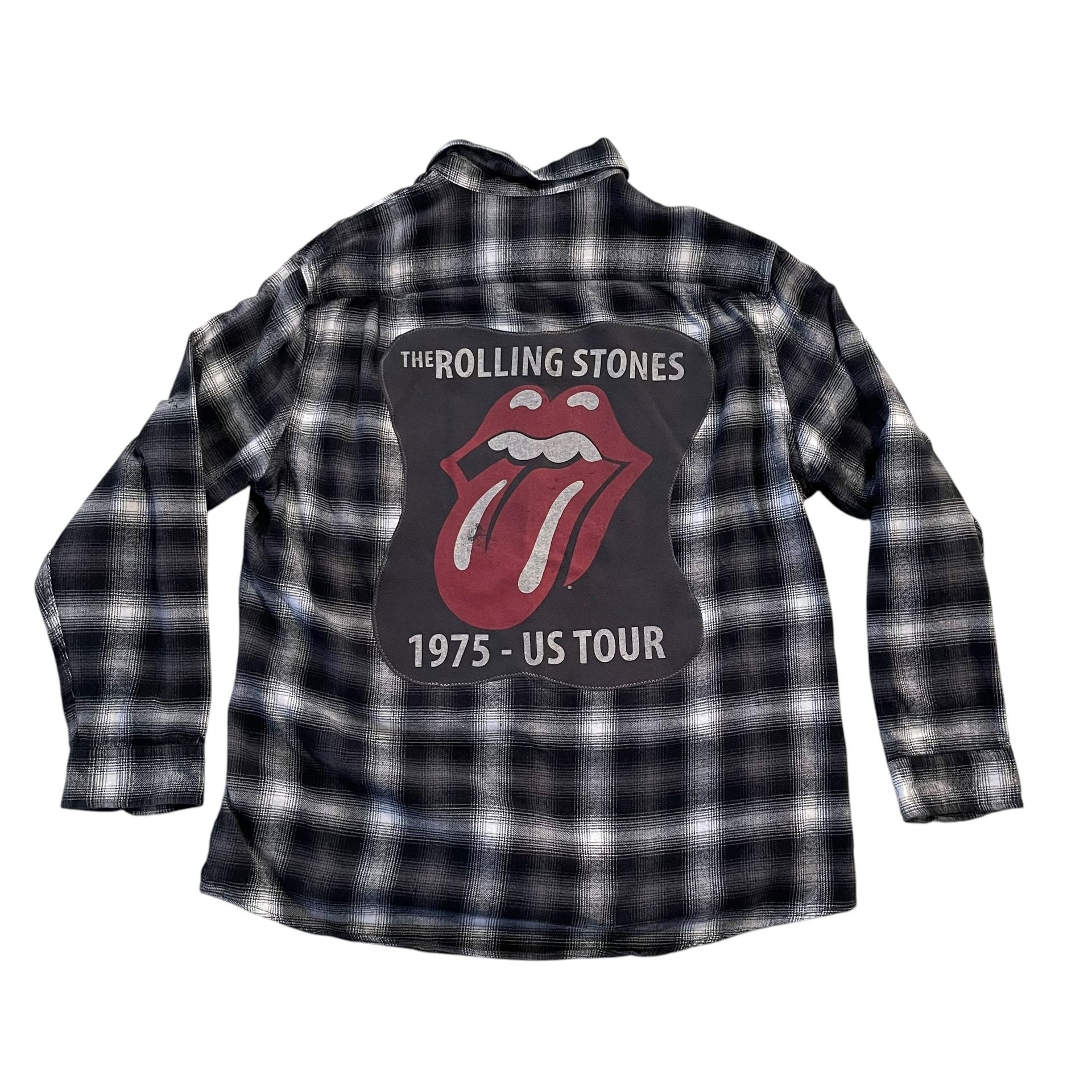 Custom Rolling Stones Black and White Plaid Flannel Shirt XL