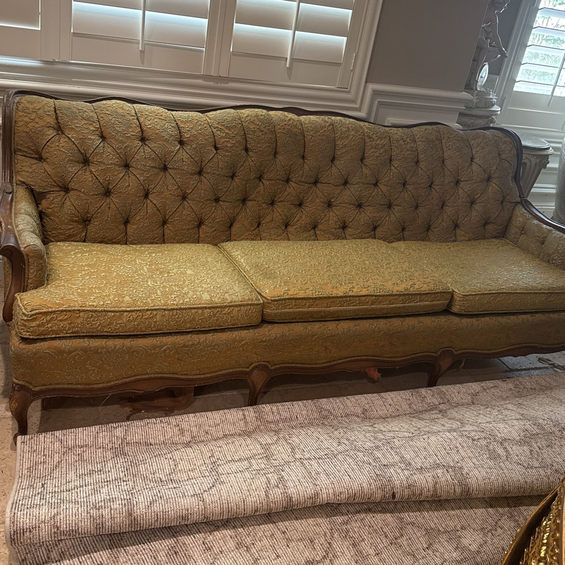 Vintage couch that been in the family. Original identification tag still attached to couch. A lot of buyers for it so far so adding a OBO for it.