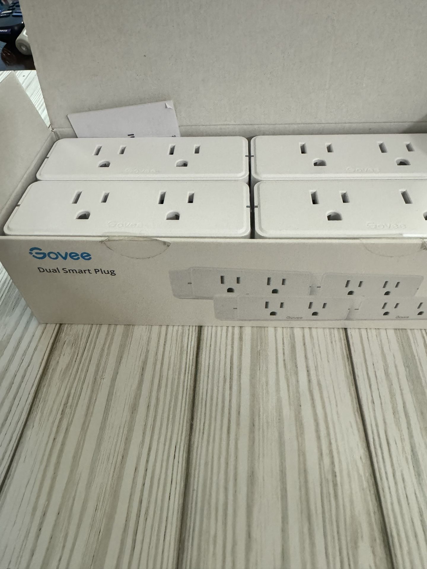 Govee Dual Smart Plug 4 Pack, 15A WiFi Bluetooth Outlet, Work with Alexa and Google Assistant, 2-in-1 Compact Design, Govee Home App Control Remotely with No Hub Required, Timer, FCC and ETL Certified. Wireless App Control: Use the Govee Home App to access the Smart Plug via WiFi and Bluetooth to enjoy powerful control and convenient features no matter where you are. Note: Don't support 5G WiFi. Smart Voice Control: Compatible with Alexa and Google Assistant for hands-free on/off control of your plugged-in devices and appliances. Note: Users must create a new Govee Home App account or be logged in to use this Wi-Fi Plug. Set Automated Timers: Create customized timers and on/off schedules for all your devices and electronic appliances powered by Smart Plug, helping to save on energy and monthly bills.