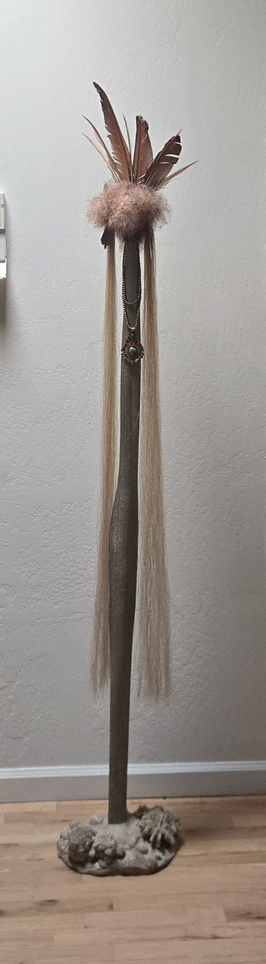 Native American Signed Totem Sculpture Stone Base Turquoise Earrings Necklace 69" tall - unique and beautiful art piece! $800/obo