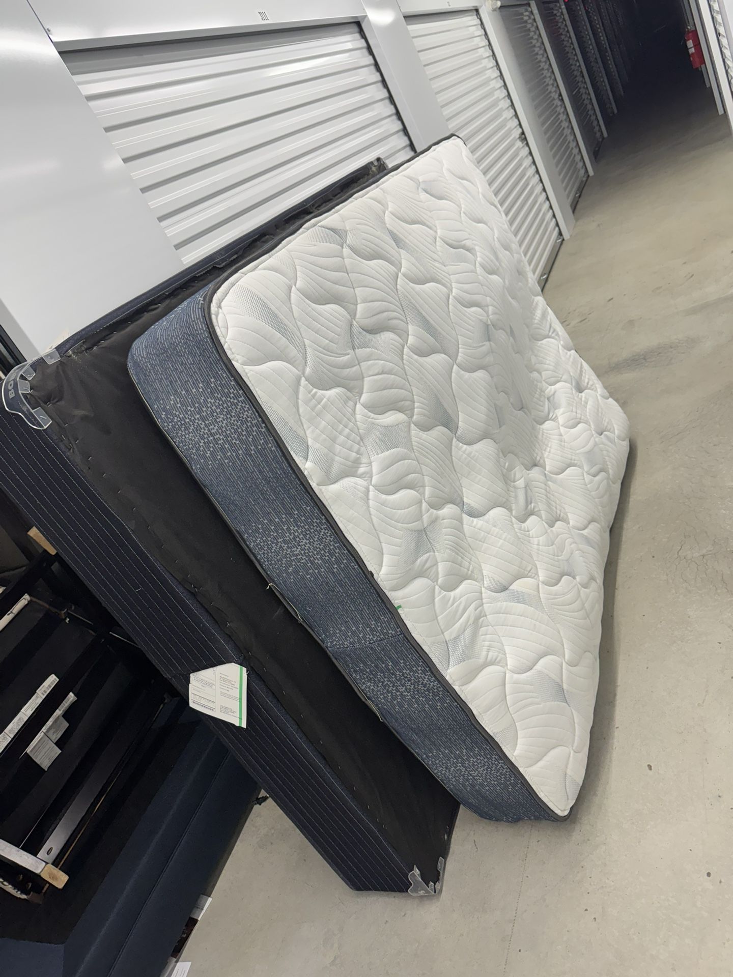 Queen bed frame with headboard, footboard, side rails, and support slats Queen mattress and box spring Matching black dresser Matching black nightstand All items are sturdy and functional. Mattress and box spring are clean with no stains or odors. Furniture shows minor cosmetic wear from normal use but nothing that affects use. Great for apartment, guest room, or quick move in setup. Selling as a complete set only. Pickup required. Selling as a complete set only. Price is fair.