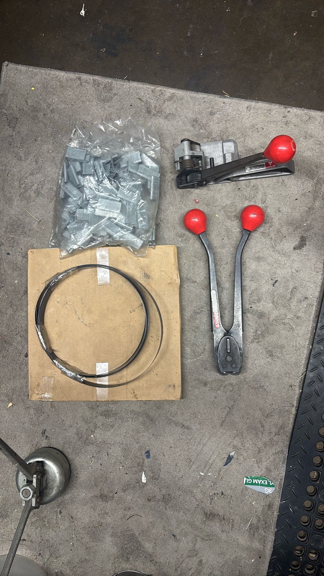 Strap tensioner and sealer 2 pack of snap on Seals and a box of metal straps Brand SIGNODE