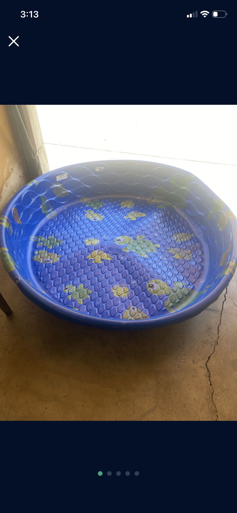This is the large pool measuring almost 5 ft. Exactly measures 4feet & 48 inches long and 1 ft deep. It's the thicker plastic kind so it won't tear or rip. 59”W 11.5” H