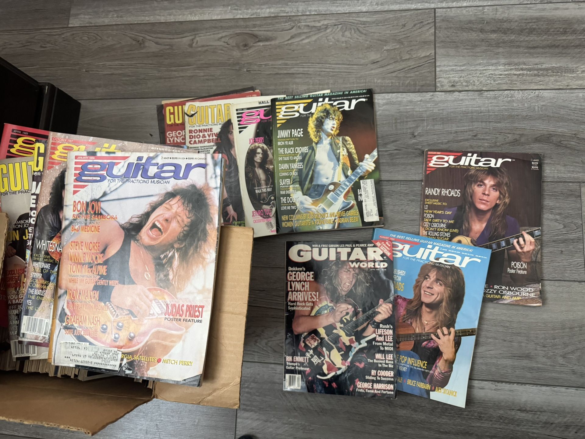 A great lot of old school guitar magazines…probably over 80+ of them. 2 boxes full. All of the rock and guitar greats. 50 cents per mag! Eddie Van Halen, Jimi Hendrix, Randy Rhoads, Jimmy Page, Paul Gilbert, Joe Satriani, Steve Vai, Gary Moore and many more.