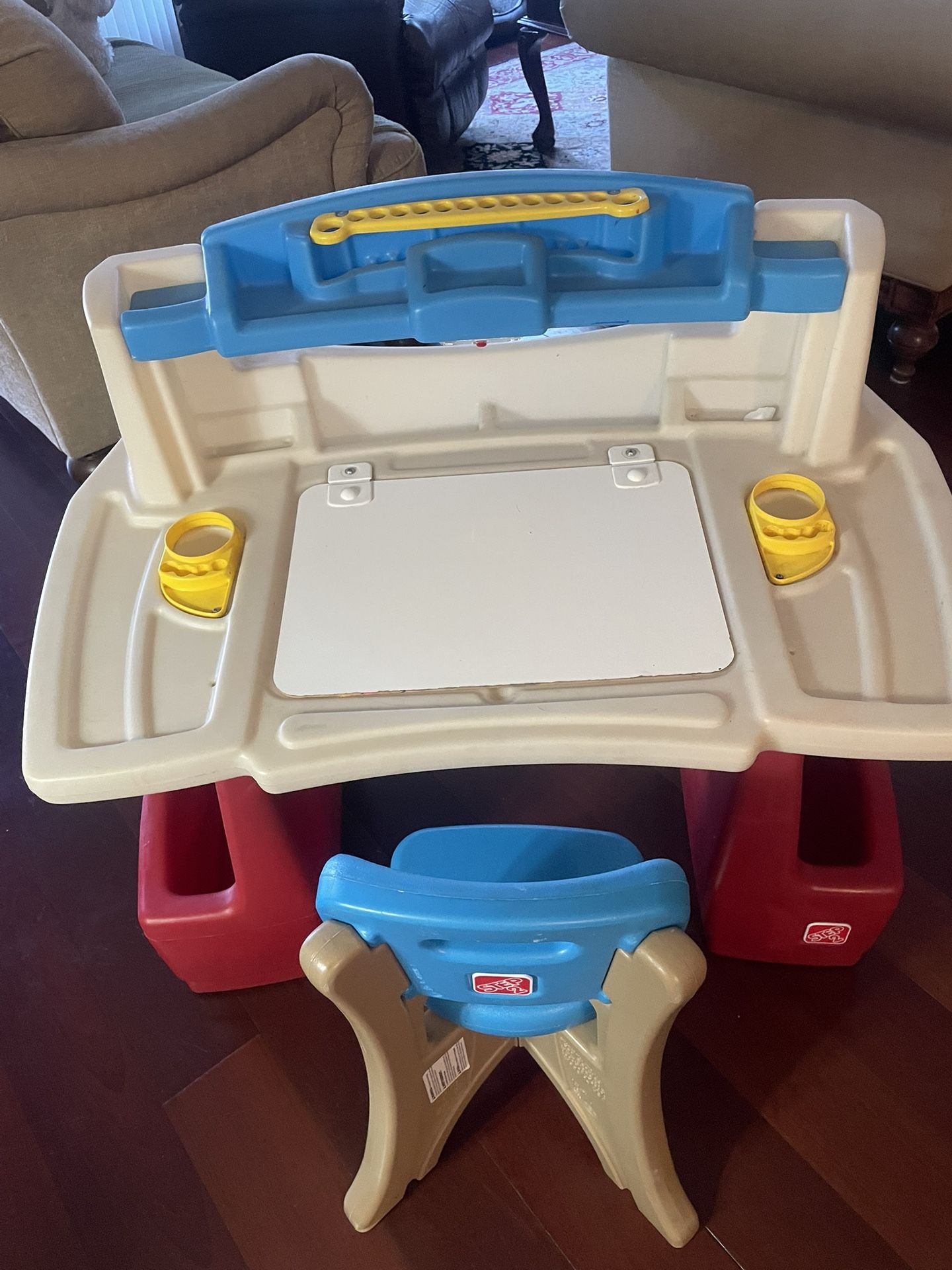 Grandson has outgrown and making room . Very good condition . 2 side cubbies to store books . Desk top opens has storage space. Has a working desk light. We are in the SDSU/Rolando area. $45.00