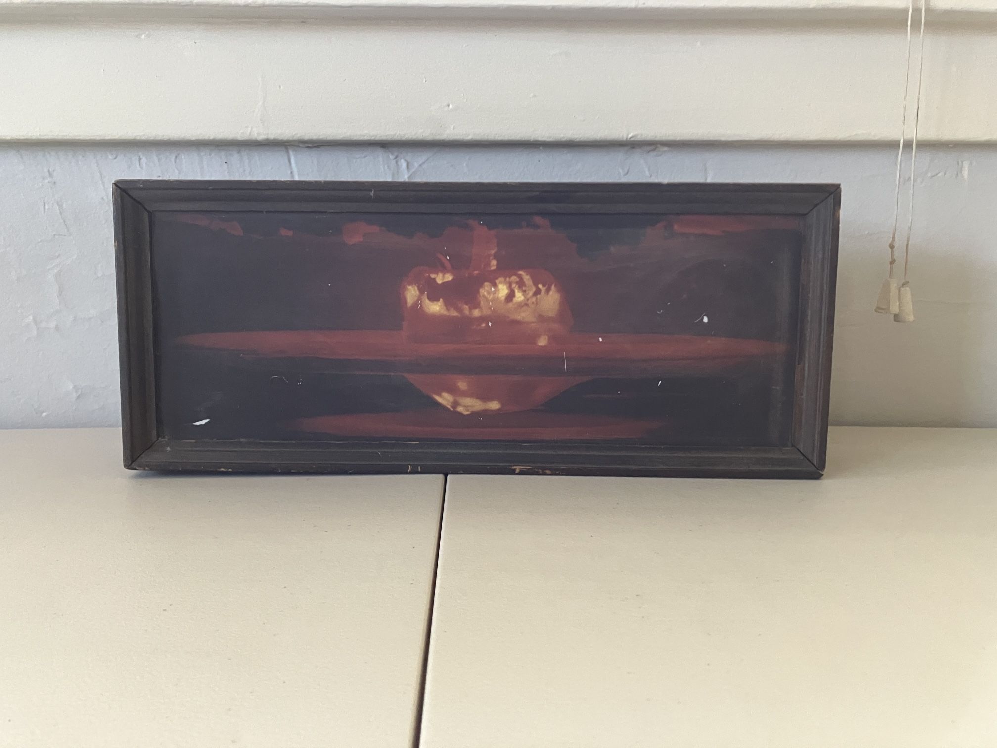 Vintage mushroom cloud shadowbox lap. Used condition - some chips to the paint surface. Cash and Pasadena pick-up only. Serious enquiries only. Thank you !