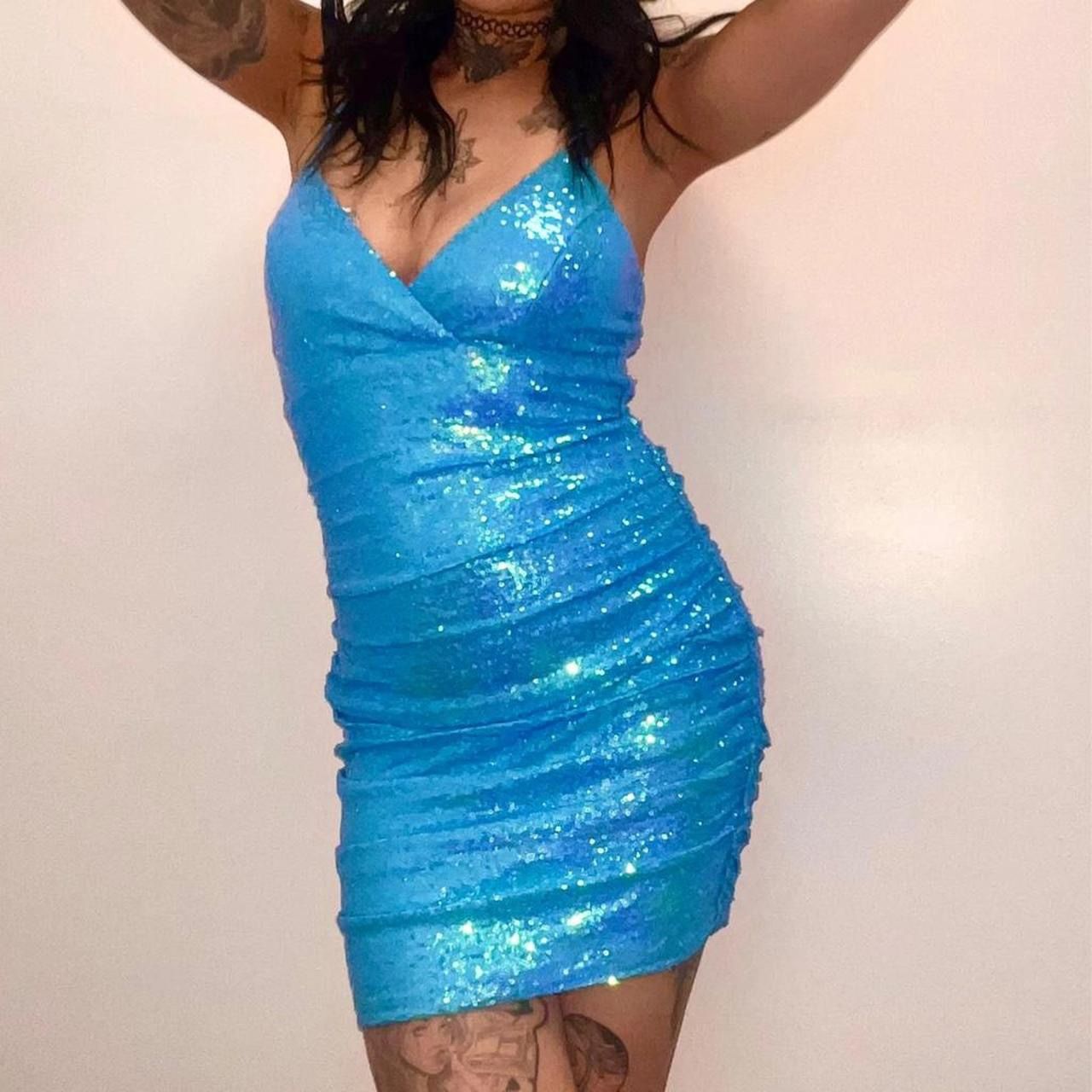 Blue Sequin Bodycon Mini Dress - NEW w/ Tags This dress is pure sparkle A stunning turquoise/blue sequin bodycon mini designed to hug the body with a flattering ruched fit. Features a V-neckline, adjustable spaghetti straps with a criss-cross back, and all-over sequins that catch the light beautifully from every angle. Fully lined for comfort while still giving that snatched, confident silhouette. Perfect for nights out, birthdays, festivals, Vegas trips, bachelorette weekends, or any moment you want to shine Details: • • Color: Bright turquoise / aqua blue All-over sequin fabric V-neckline with adjustable criss-cross straps • 1 Bodycon mini length with ruching Fully lined NEW Brand new with tags Size available: • 1 x Small Original price: $65 Sale price: $37 Only one available — once it's gone, it's gone Message me with any questions or for bundle deals
