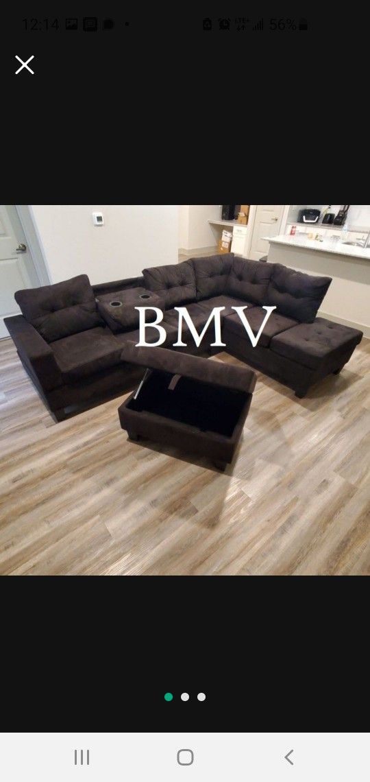 New Sectional with Storage Ottoman - AVAILABLE IN BLACK, GREY, AND CHOCOLATE BROWN