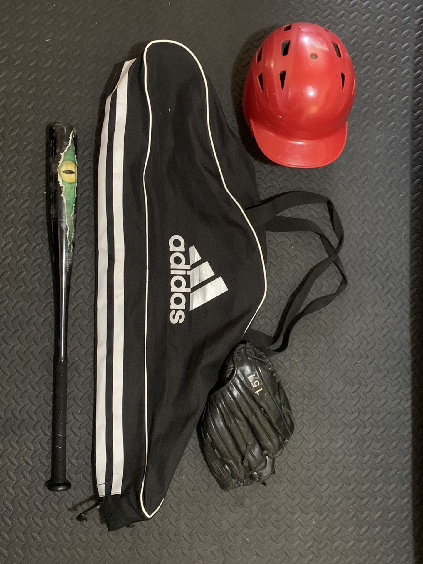 Baseball bat Baseball mitt Baseball bag Baseball helmet Pick up only