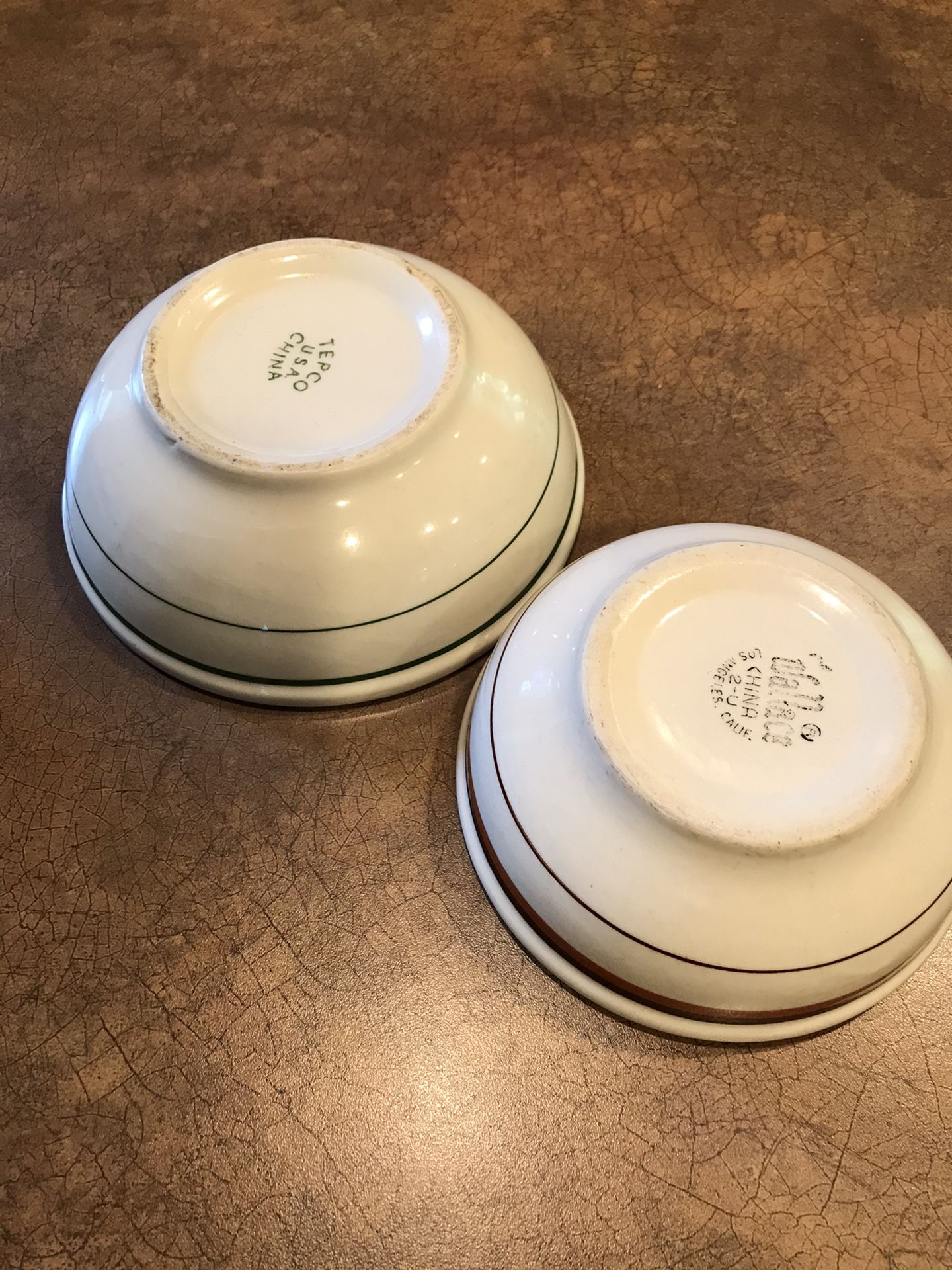 2 very sturdy vintage soup bowls. Price for both. 5 inches and 6 inches wide. Banana for scale only Porch pickup near 56th and pacific ave in Tacoma Check out my other vintage pottery!