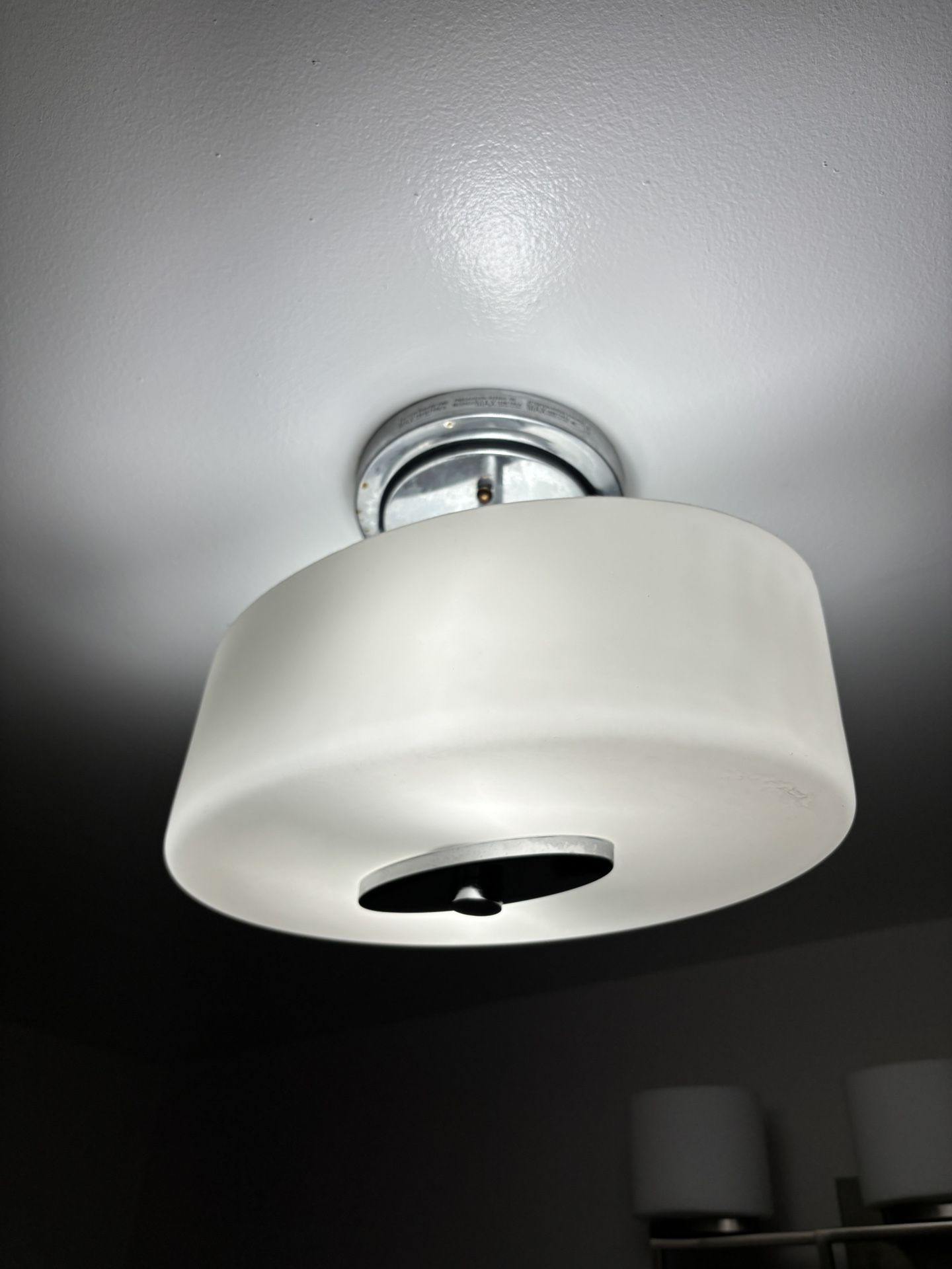 Beautiful glass and chrome light fixture. Works perfectly and in great condition. No longer fits the style of my bathroom.