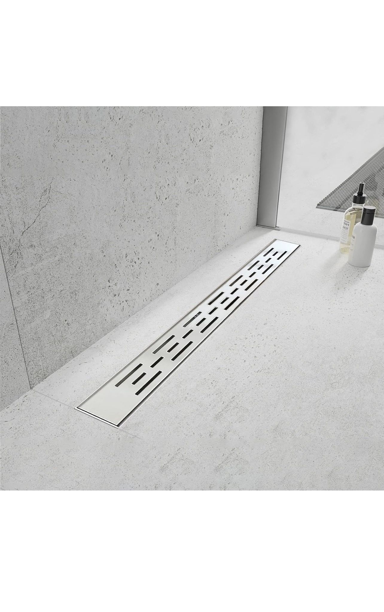 Linear Shower Drain, Shower Drain 24 inch with Bar Pattern Grate, Durable AISI 304 Stainless Steel Shower Drain, Linear Drain with Hair Strainer and Leveling Feet