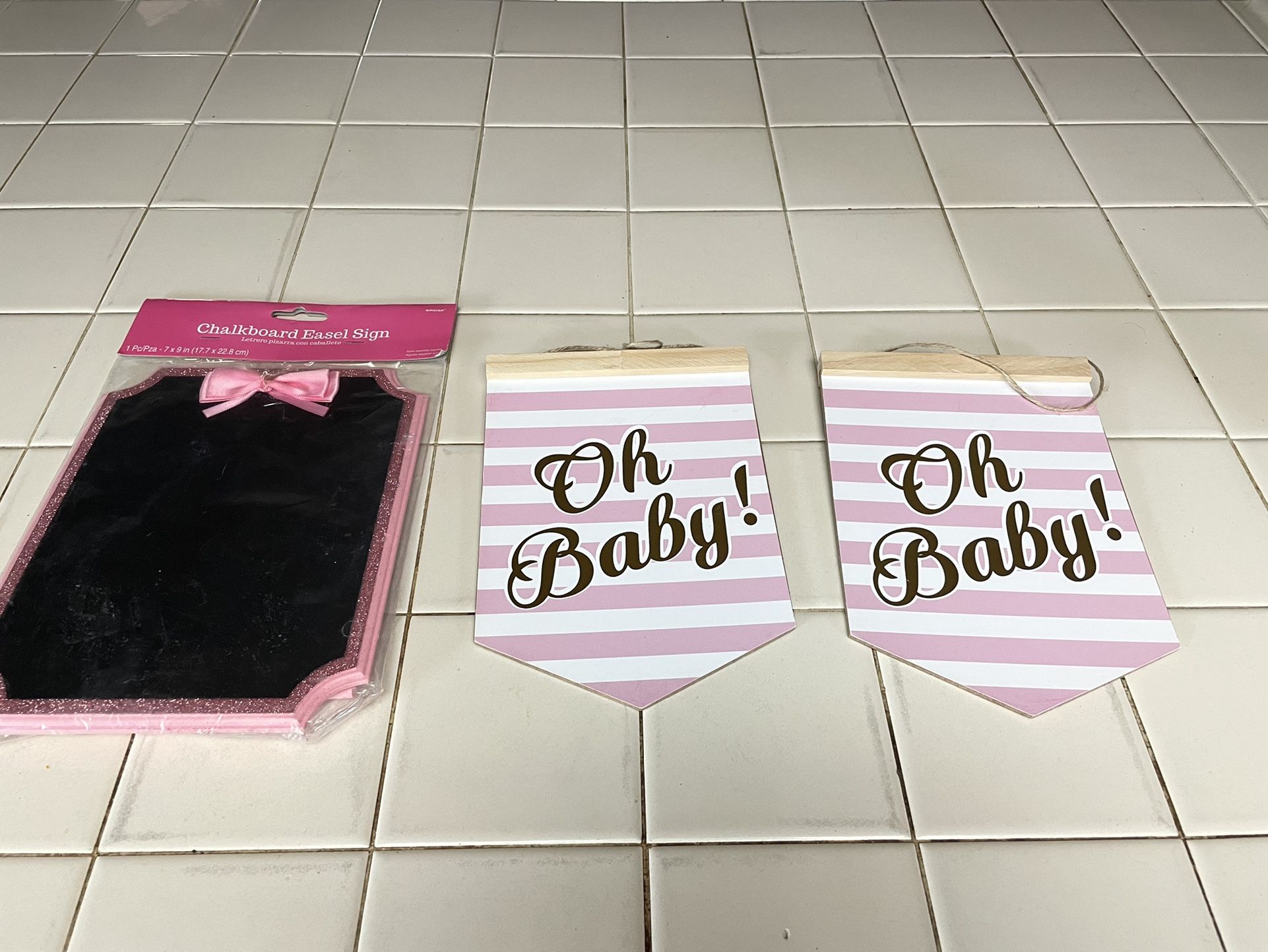BABY SHOWER! I have these cute baby shower decorations that I didn’t use and was unable to return. 1 pink chalkboard approx 7”W x 9”L 2 cute “Oh Baby” hanging signs