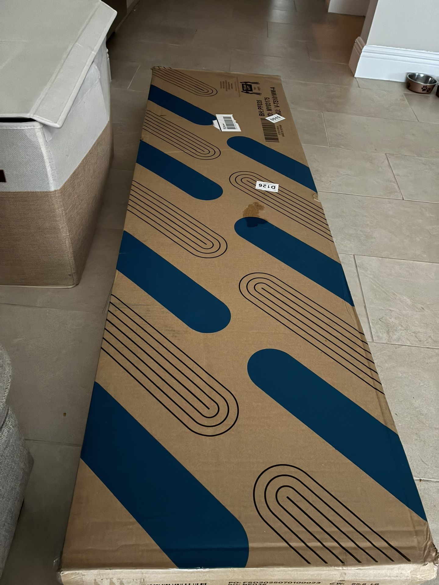 Brand new mid century modern tv stand in box and never opened, can help load in your car if needed. First come first serve