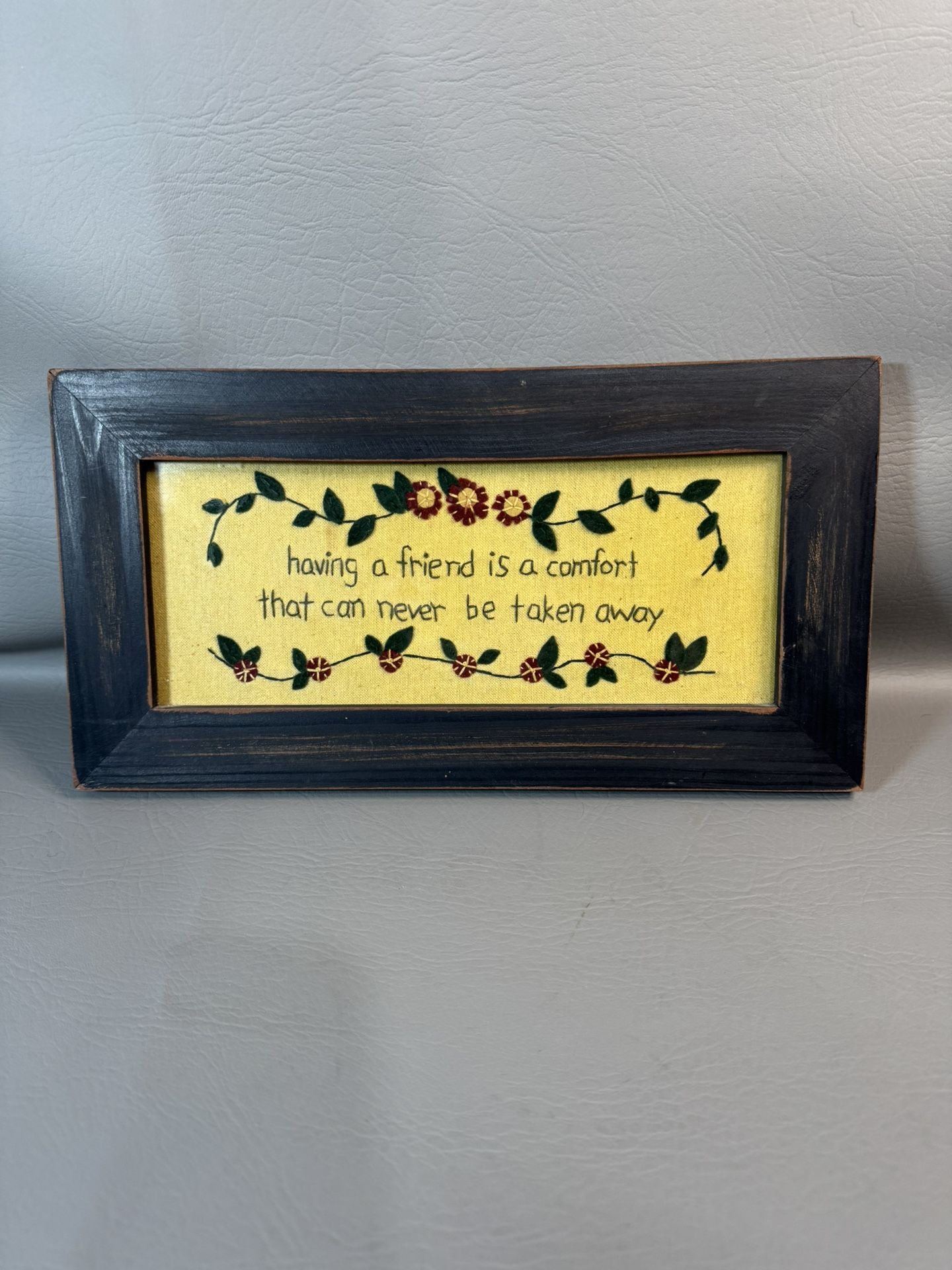Primitive Country Cross Stitch Wood Framed Home Decor Embroidery Flowers Friend