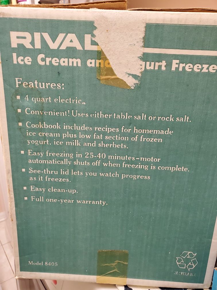 Homemade dessert just became simpler. It's easier than ever to make fresh, tasty ice cream at home with this Rival ice cream and yogurt maker. This 4-qt. electric freezer makes ice cream in 25 to 40 minutes. It uses regular salt or rock salt, cleans easily and shuts off automatically when cycle is complete.