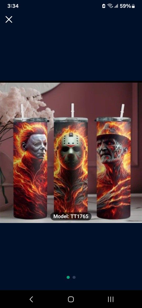 20 Oz Stainless Steel Tumbler new Jason ,Freddy, myers,20 Oz tumbler .Must pickup Culebra amd 410 area. All sales final no refunds. Thank you