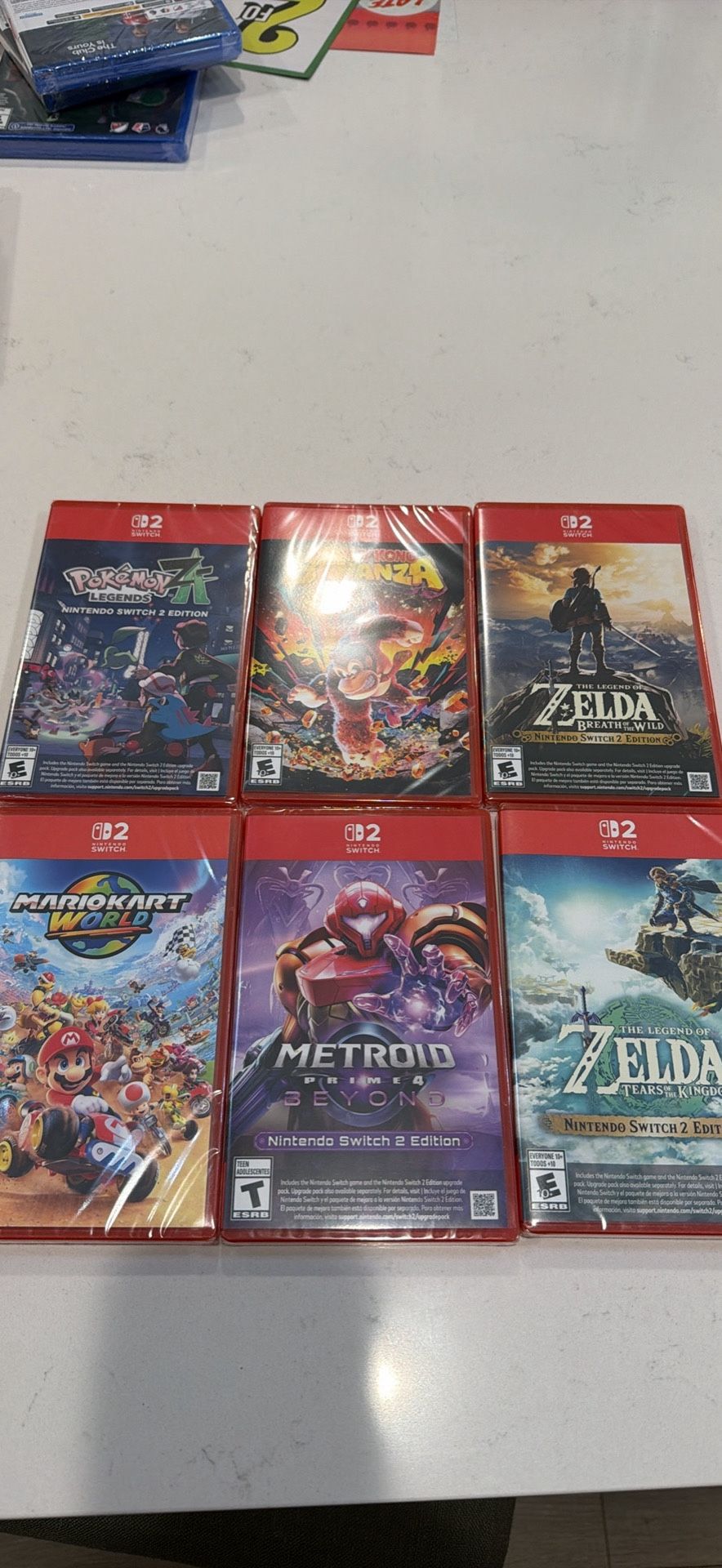 Switch games $59 ea. Or 1x$59 2x$110 3x$165 4x$210 The games that you see on photo are available. -Zelda tears of kingdom New sealed -Zelda breath of the wild New sealed -Donkey Kong Bonanza New sealed -Metroid prime beyond New sealed -Pokemon ZA. New sealed -Mario kart world. New sealed Delivery fee is $20 or pick them up in the city of Hesperia 92345 We also buy sell and trade video games at Cypress swapmmet 9200 valley view st cypress, CA #G31R 9-3pm saturday and sundays