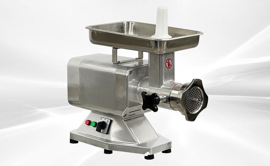 Aluminum-magnesium alloy body and stainless steel tray This machine integrates functions such as meat grinding, vegetable chopping and sausage filling. The discharge hole has no gaps, does not accumulate dirt, easy to disassemble, and convenient for cleaning. The high-packing auger retains the nutrients in the food and keeps the meat fresh. One-touch safety switch, waterproof and leakage-proof, safe, long service life. Two sets of knives Comfortable anti-slip foot mats. It not only provides good grip during operation but also reduces noise.