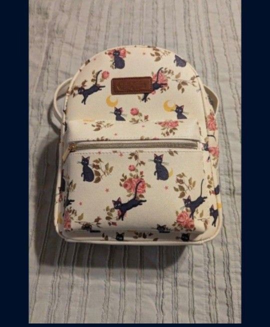 Sailor Moon Luna floral mini back pack with gold hardware. Front zipper pocket and interior pocket. 7 1/2 X 4 1/2 X 11, Like New