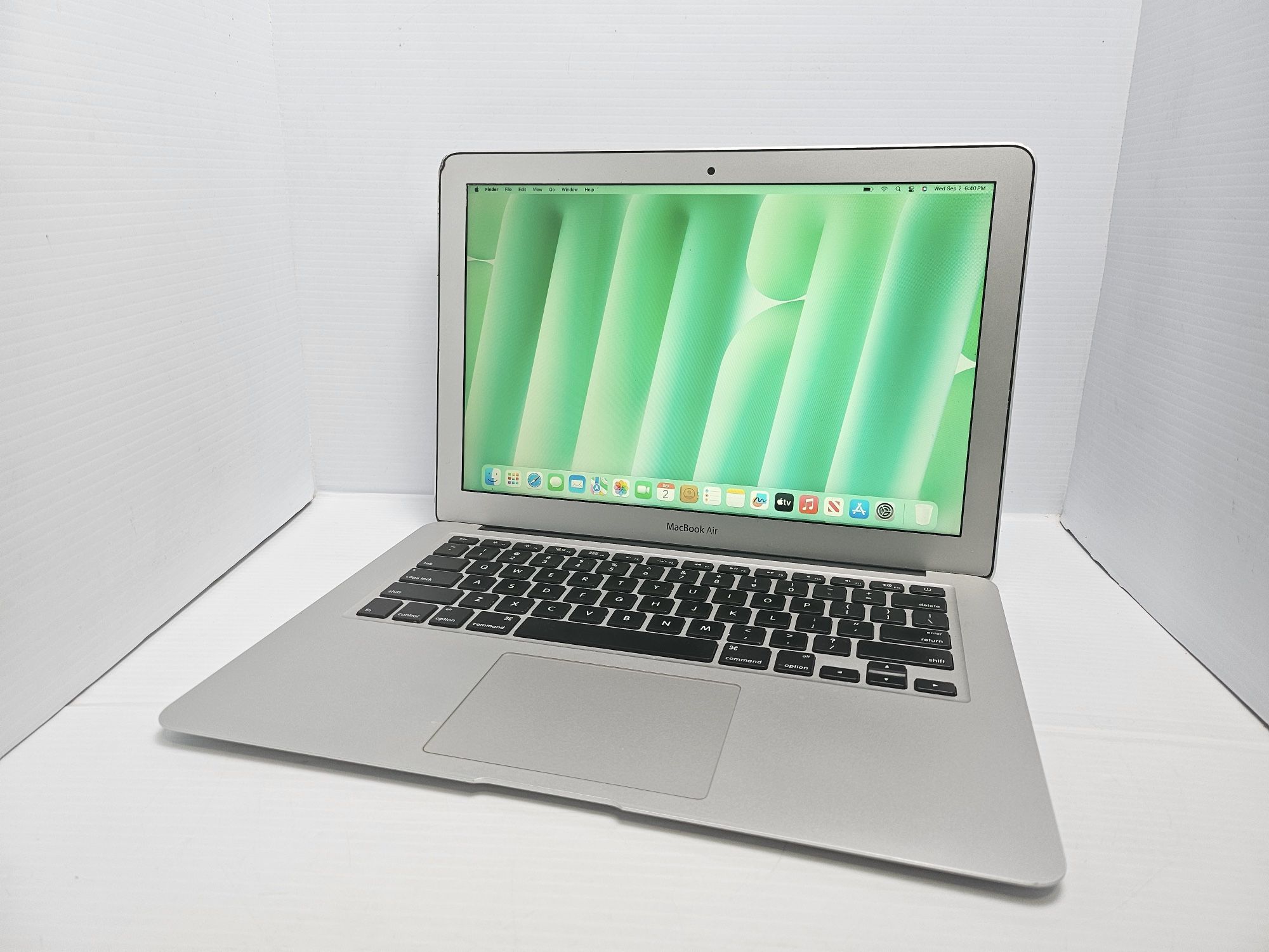 Apple MacBook Air. Professionally refurbished. Wiped clean and reset. No accounts no password. Great budget Mac for work or school. Upgraded to macOS Sequoia. Specs: 13.3" Display Intel Core i5 1.4GHz 4GB RAM 128GB SSD WiFi, Bluetooth, USB Has signs of wear such as scratches and scuffs. Battery is good. Charger is included.