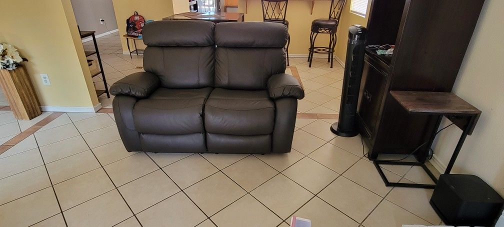 Reclining Leather love seat and sofa. Excellent condition. Less than a year old.