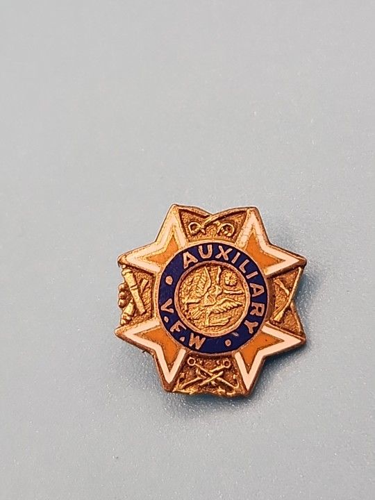 VINTAGE AUXILIARY VFW VETERANS OF FOREIGN WARS GOLD TONE ENAMEL LAPEL/HAT PIN