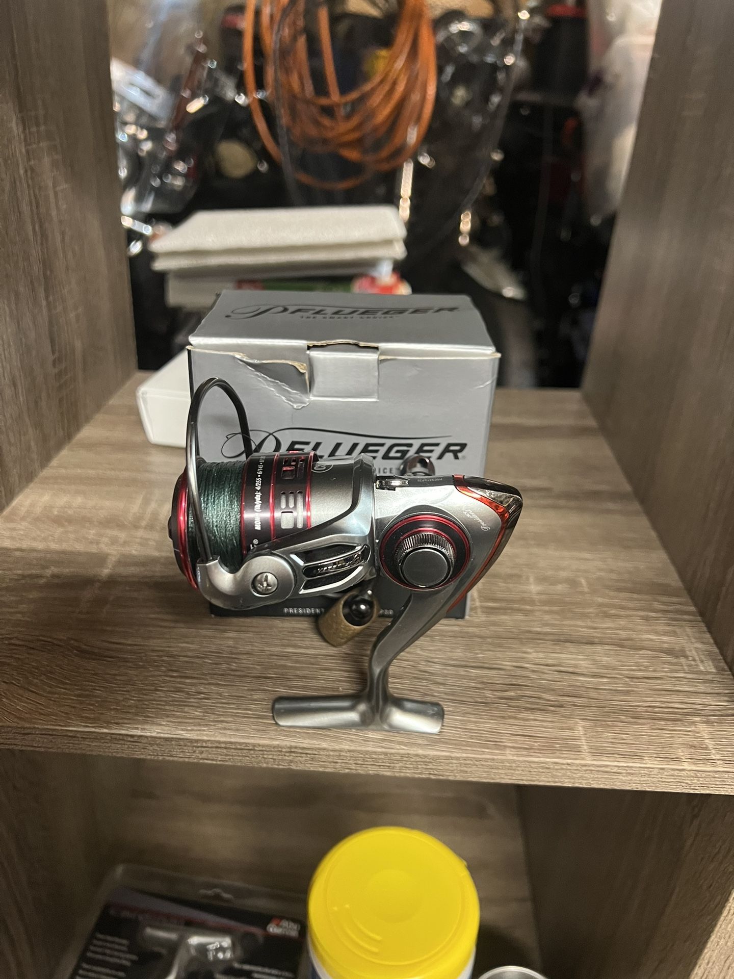 Pflueger president XT reel π in box $100 Pflueger president reel π $60 Pflueger president reel $50 Pflueger president reel π $60 Abu Garcia Cardinal AG1F reel new $20 Okuma ROX-30 reel π $15 Penn 9 level wind reel $60 Discount potential for bundling!