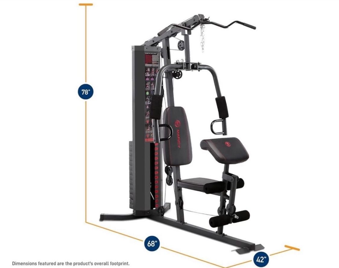 Marcy Multifunction Steel Home Gym 150lb Weight Stack Machine PREMIUM STEEL CONSTRUCTION – This home gym system is made with heavy-duty steel tubing and reinforced with guard rods that hold weight in place during workouts. WEIGHT STACK LOCK – This gear comes with a 150-pound selectorized weight stack that can be customized according to your skill level to avoid the stresses of loading and unloading weight plates with a safety lock that prevents unauthorized use of equipment DUAL ACTION PRESS ARMS-Designed with dual action press arms, this versatile equipment allows you to perform chest press and vertical butterfly exercises to develop your biceps, triceps, pectorals, and other muscles with a simple remove/insertion of a pin REMOVEABLE CURL PAD – This home gym machine features ergonomically designed seats with high-density boxed upholstery to reduce tension and impact. The preacher curl bicep pad is removable and adjustable to allow isolated bicep exercises. CONVENIENT HOME GYM- enjoy efficient training right in the comfort of home with this equipment featuring an innovative structure that combines arm and leg stations; great for strengthening muscle groups and achieving a comprehensive total-body workout.