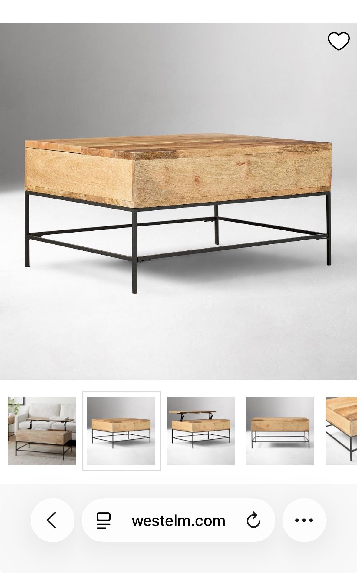 West Elm 50” Industrial Storage Pop-Up Coffee Table