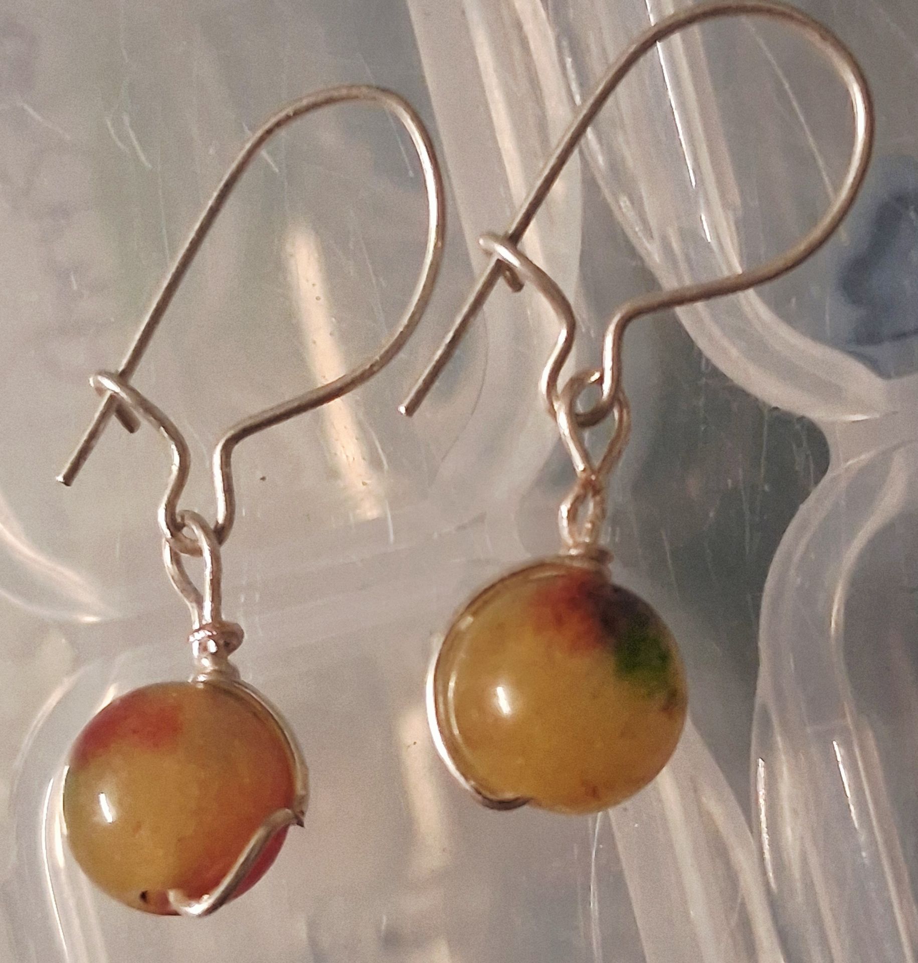 Made with natural stones and sterling silver wire and ear hooks.