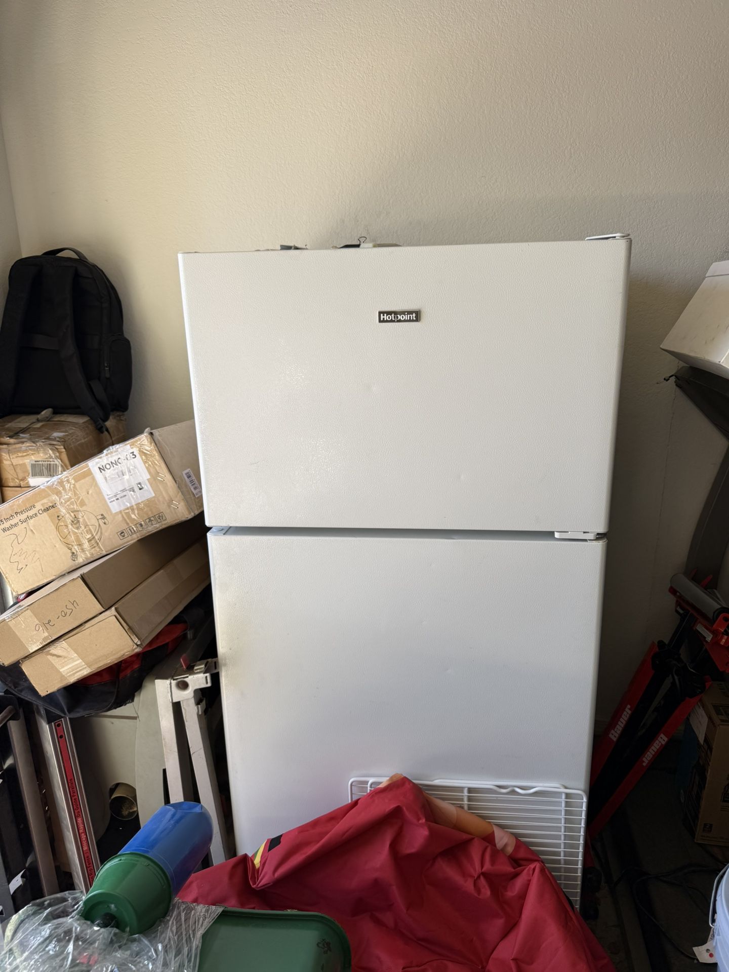 Both refrigerators are hotpoint … one has door damage , great for garage , mancave ,or simply just for extra storage … asking $200 a piece …