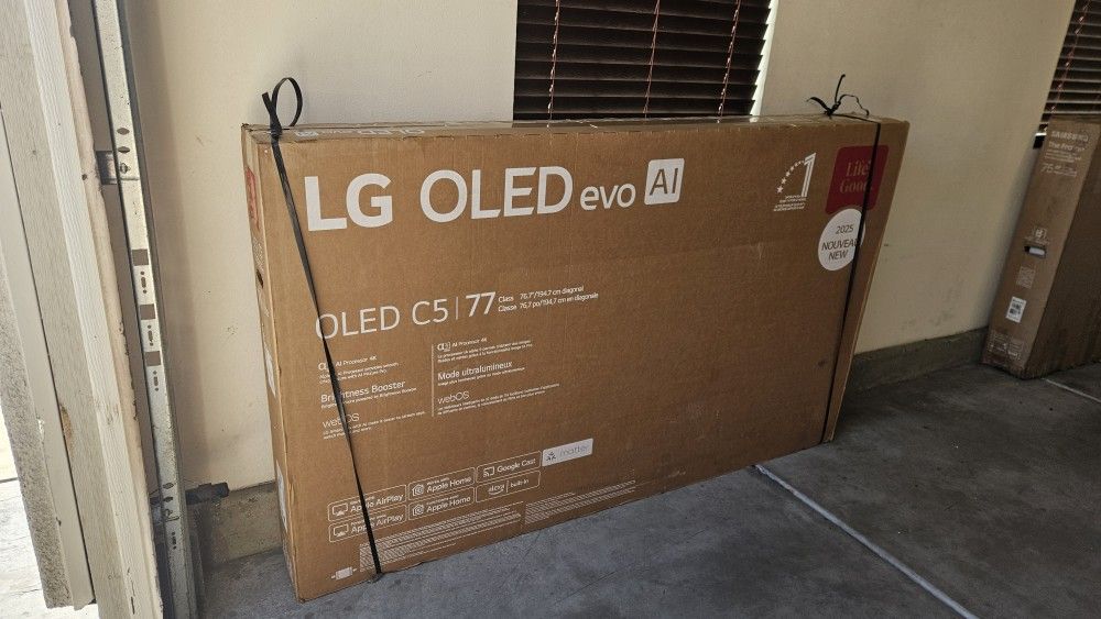 New 77 Inch Oled LG C5 Smart TV 4K UHD with 120 Hz refresh rate. New in the box. Includes all new accessories. You are welcome to open it and test it upon delivery or during pick up. Local delivery available in Southern California. Pick up in Eastvale Model Number OLED77C5PUA