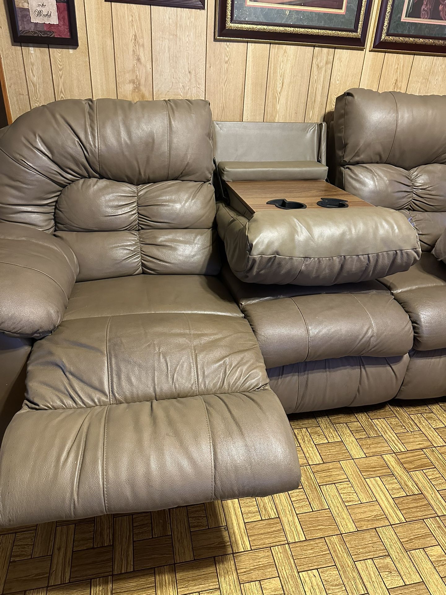 Leather Sofa With 2 Reclining Sides And Center Consule